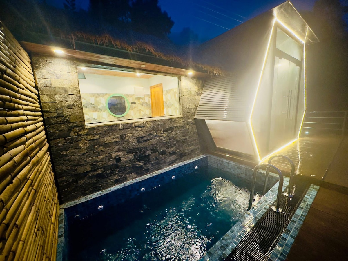 A romantic gateway inside a modern A frame designed to enjoy the serinity.perfect for a romantic destination, friends, family. The gorgeous private pluge pool, spacious living and bedrooms facing the misty mountains will give you a fresh & energetic start & chilling end for your day. personal butler service is arranged. The space is extended by two levels including two beds, 2 bathrooms & a spacious living & dinning areas which suits a couple, few friends or a family with kids.