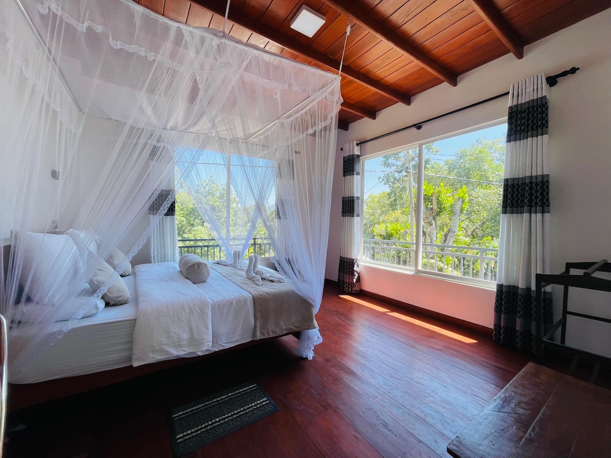 Welcoming to Ella panorama villa.A beautiful and Spacious Room waiting for you! . The family room offers 2 extra large bed, Fully temperd glass doors, air conditioning,Refrigerator, Electric Kettle and Tea and coffee amenities,a private entrance, a wooden terrace with panoramic mountain view as well as a private bathroom featuring a shower. And also 10min Walking distance to the nine arch bridge. We provide Free parking and High speed Wifi facilities.