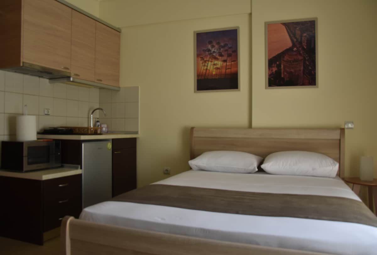 Cozy studio right across democracy square metro station. This modern studio provides easy living and access to anywhere you may decide to visit. It's a perfect place to axplore the city. Ideal for a couple or professionals. Το Fresh Studio είναι ένα άνετο studio, που βρίσκεται σε κεντρική και ασφαλή περιοχή της Θεσσαλονίκης. Προσφέρει άμεση πρόσβαση στα ιστορικά αξιοθέατα της πόλης, στην αγορά , στην Διεθνή Έκθεση Θεσσαλονίκης, στα καταστήματα διασκέδασης και χώρους εστίασης.