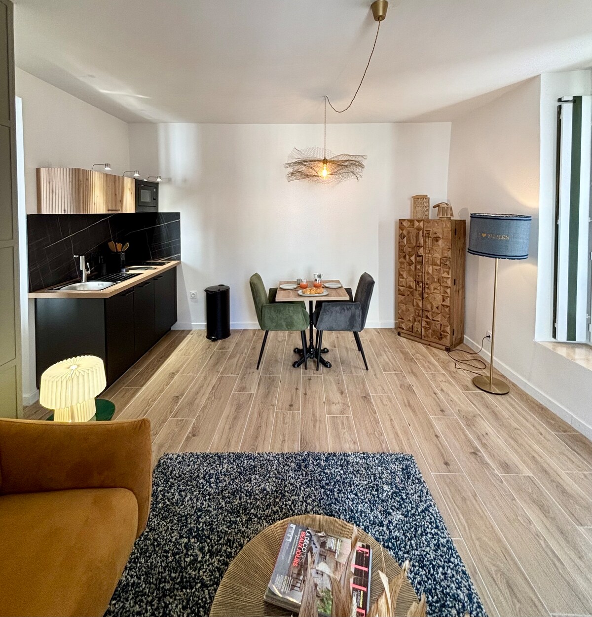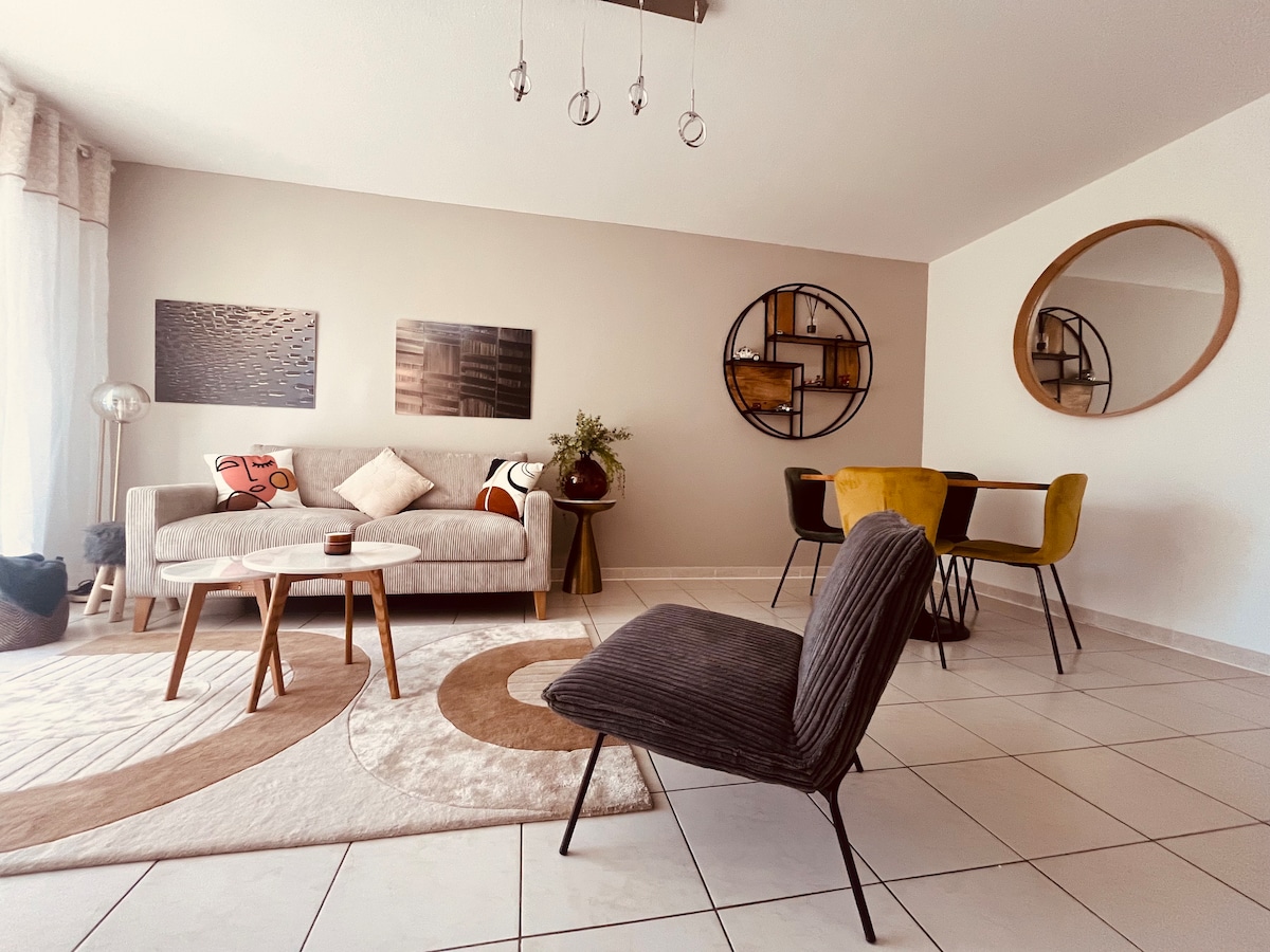 Enjoy an elegant and central accommodation. In the heart of Nîmes, close to the main monuments of the city (arena, Romanité museum, clock tower, town hall, train station, ...) come and stay at the 'Bohème'. In a quiet street, close to the esplanade and the arena, you will have a spacious, modern and renovated duplex flat of 60m² allowing you to make the most of your visit to the city and its surroundings.