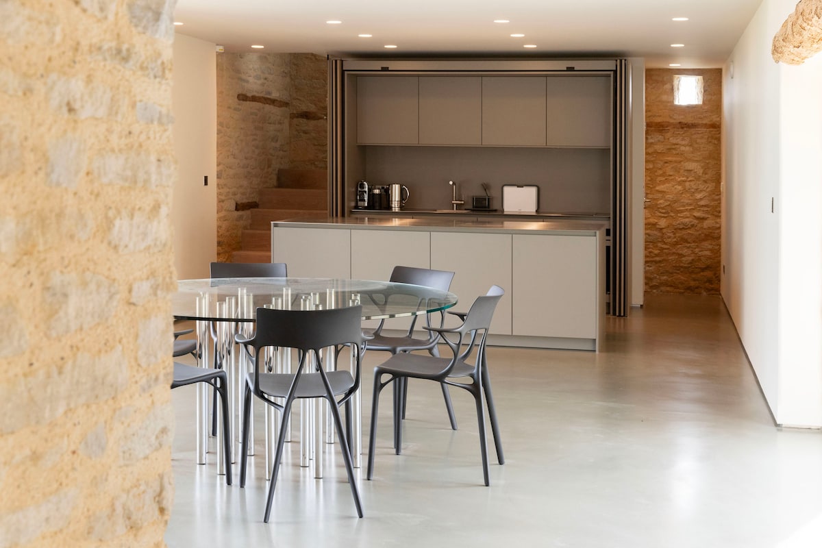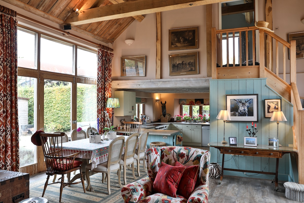 Unique barn conversion nestled in a medieval alley in the heart of Fairford - open plan barn living with a snug living room and luxury bathroom. Climb the spiral staircase to the boutique bedroom or relax in the pretty, enclosed stone walled garden. We're next door to a lovely 15th century inn with a choice of other pubs nearby; Italian restaurant; local shops; pharmacy; cafes and takeaways on hand - a perfect base to explore this lovely part of the world!