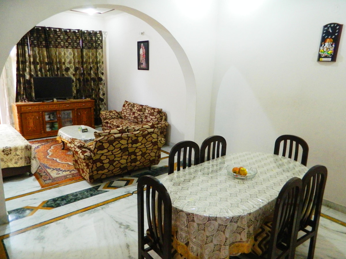 This stylish/Beautiful HolidayHome/Flat is perfect For Group Trips. Spacious 6 Bedrooms and living Area on same Floor .(Entire Floor ) 2nd Floor includes Elevator Caretaker 24/7 For any Help Guests will thoroughly Enjoy Their Stay with Delicious Food Served in Rooms From near Restro (Extra). Full Kitchen Provided on Terrace (4thFloor) Big Community Park Just Opposite. SEE YOU SOON:)