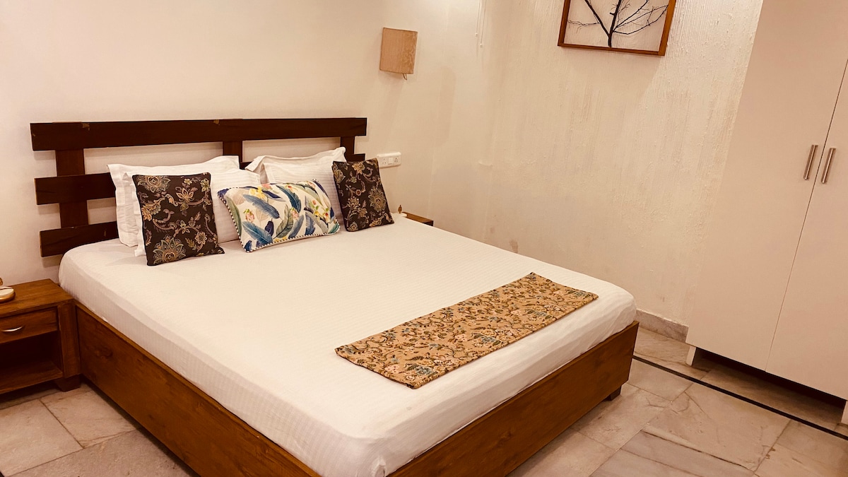 A deluxe en-suite room with a king size bed and a wonderful view. Landscape seems to flow into the interiors of the room. Step out of room and you are in the sitout and lush green lawns. Enjoy a leisurely cup of green tea amidst lovely flowers and listening to bird songs. NO CLEANING FEE !!! Please also checkout 2 other rooms we have Morning Glory Room https://www.airbnb.com/rooms/25783018 Marigold Room https://www.airbnb.com/rooms/25383809