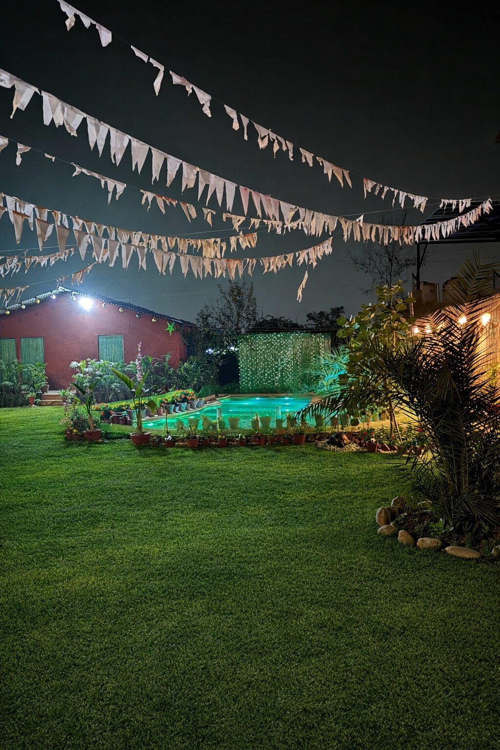 YOUR QUEST FOR THE DREAM VILLA ENDS HERE , ENJOY LUXURY AT OUR COZY 8 BEDROOMS VILLA THAT OFFERS THE PERFECT BLEND OF RUSTIC CHARM AND SERENE ELEGANCE . LET LOVE BLOOM , SWIM IN OUR BLUE POOL , RELAX IN OUR GREEN LAWNS.
