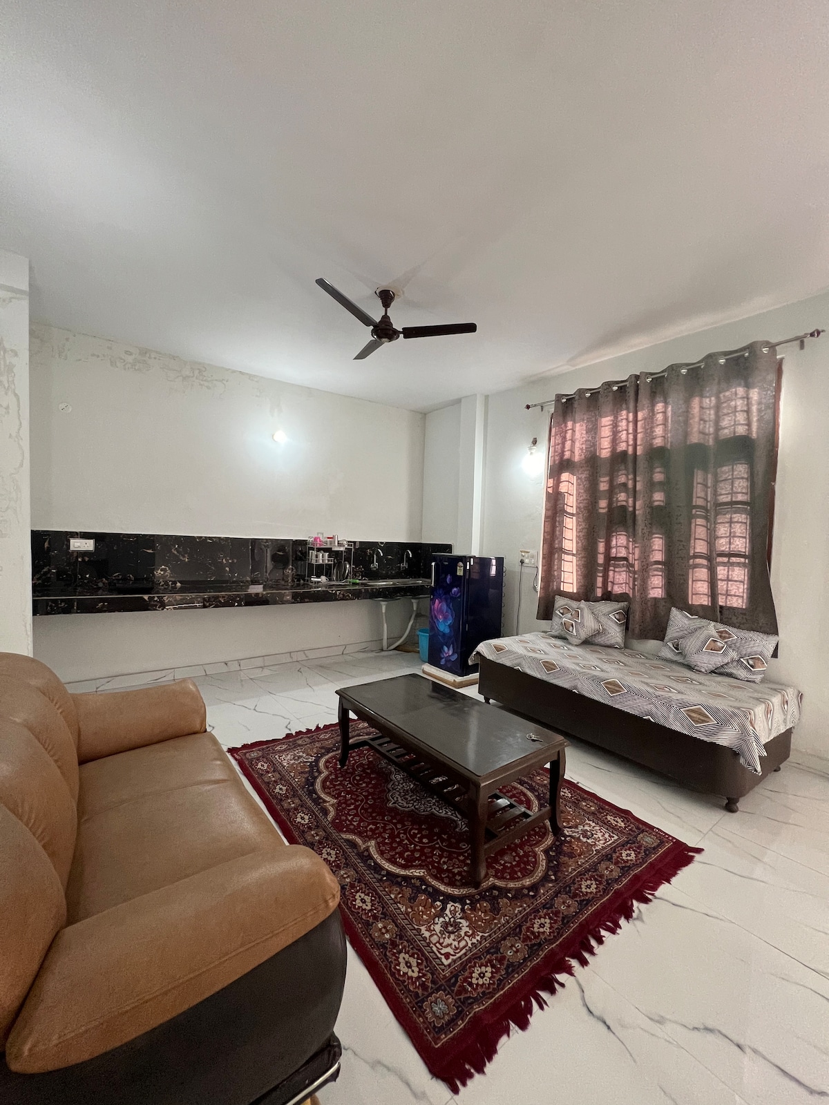 🌿 Tranquil Retreat: 2-Room Haven with Kitchen, Dining and Lounge. Welcome to our charming Airbnb property nestled within a secure gated society. Unwind with loved ones in this serene 2-room abode boasting a cozy kitchen, inviting dining area, and a comfortable lounge. Embrace the peace enveloping this space, a perfect spot to relax with family or friends.