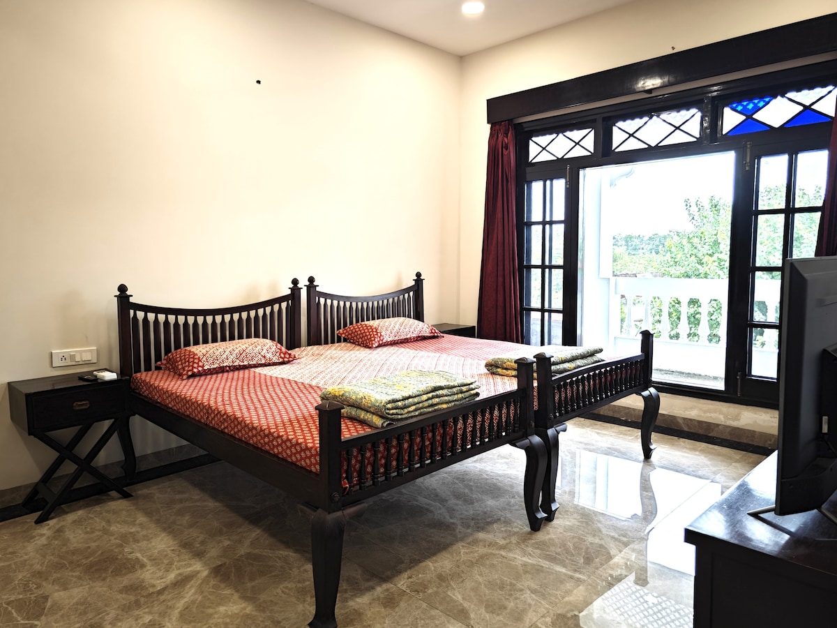 Punjab Village Farm: This independent cottage is located within a beautiful farm stay, just a 90-minute drive from Amritsar city. Nestled in the picturesque countryside, the property offers an authentic experience of rural Punjab. It provides a tranquil escape from the noise of busy cities and crowded tourist spots. The cottage is designed in a traditional mud house style and features well-furnished interiors with high-quality furniture, colonial-style lighting, and modern bathroom fixtures.