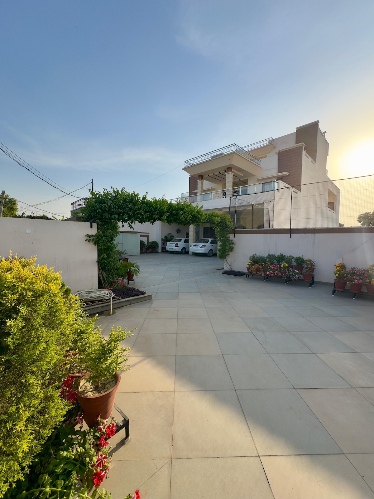 Romantic Luxury Stay near Amritsar Airport & Railway Station ✨ Private floor 10x bigger than a hotel room! Includes Bedroom, Living Room, Kitchen, Bathroom & Garden 🌿 ❤️ Perfect for couples – full privacy & resort-like comfort with top amenities. 🏊♂️ Now with a private inflatable pool – perfect for relaxing under the stars! Just for Rs.400 🛕 Golden Temple just 15 mins away 🍽️ Restaurant Nearby 🛵 Scooty on rent ₹500/day 🚗 Ola/Uber available 🍔 Zomato/Swiggy available