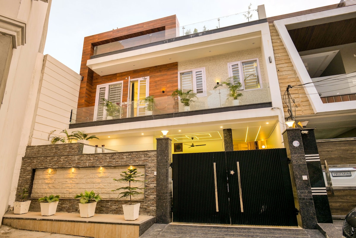 • Newly built, fully private1st floor apartment • 3 king-size bedrooms, 2 bathrooms, huge living & balcony with green views • Modular kitchen, induction plate, RO water & basic cookware. Swiggy/Zomato/Instamart/Blinkit available • Split ACs, optional heating, LED wall panels, & optional karaoke nights • Prime city-center location: Close to Golden Temple, local shops-eateries • Family & group-friendly, quiet calm residential vibes • Personalized local guidance from host & premium comfort