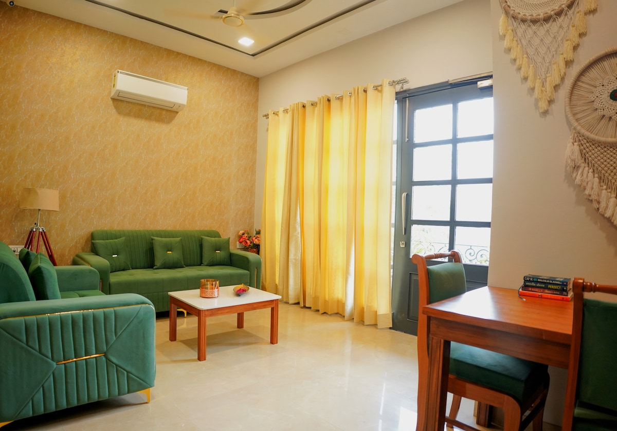 Welcome to the professionally run Scandinavian-style 2BHK suites located in the heart of Ranjit Avenue, Amritsar! Designed by renowned designer Vaibhav Khanna, our suites offer a unique blend of minimalistic design and cozy warmth. As you step into our suites, you'll be greeted by a bright and airy living room with modern furnishings and plenty of natural light. Two bedrooms offer comfortable sleeping arrangements for up to four guests with provision for extra bedding ( charged extra ).