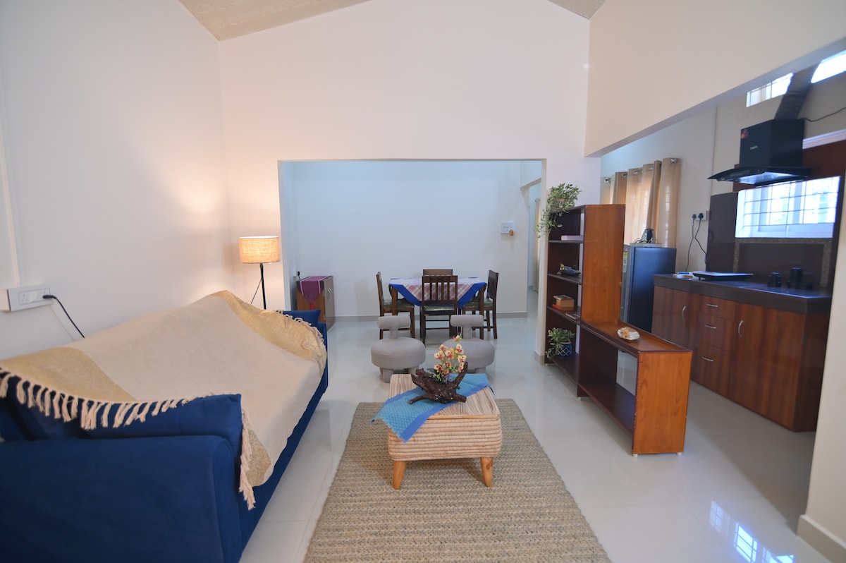 Welcome to The Cozy Nook! This charming 1BHK is nestled in a beautiful residential situated on 2nd Floor (No Lift). Whether you're a solo traveler or with family or business guest, you'll love the peaceful ambiance, interiors & convenient location. Fully equipped kitchen for Self cooking Power backup, Wi-Fi, Fridge,Geyser & TV available! Note- AC is optional: ₹200/ night extra PORK & ALCOHOL- NOT ALLOWED Parking available for Small Cars inside the premises Extra guest: ₹499 per night