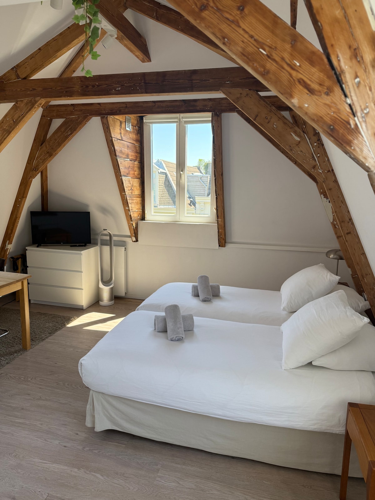 This charming, quiet, and recently renovated studio combines historic charm with modern comforts. Perfect for couples, solo travellers and business guests, it includes a private bathroom and fast WiFi. It has a small kitchenette where you can make coffee and tea, no breakfast is served. Nestled on a quiet residential street in, you’re within walking distance of major attractions. Just a 30-minute bus ride from Schiphol Airport and 17 minutes by tram from Amsterdam Central Station.
