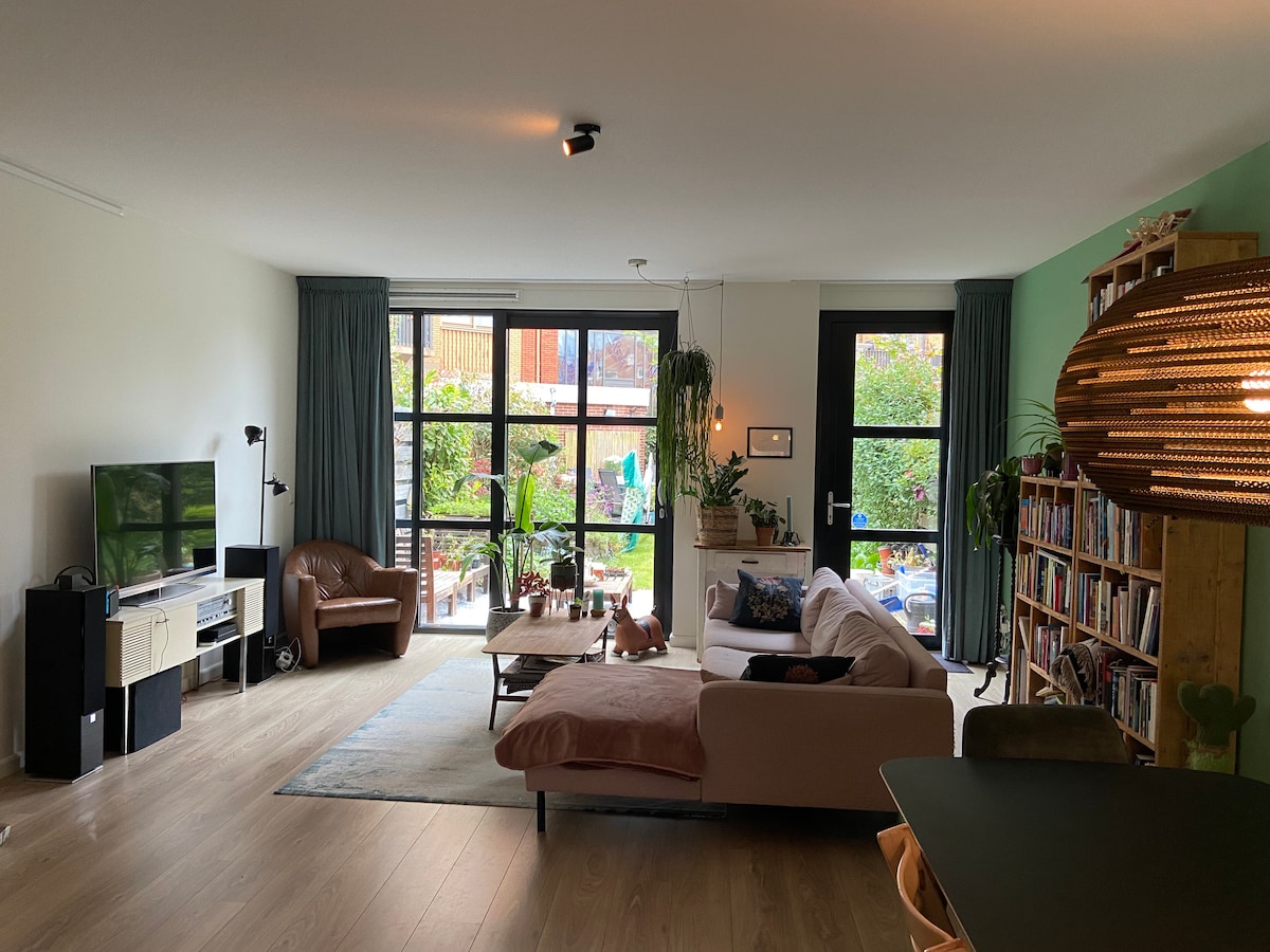 Welcome! We rent out our lovely family home with a garden. It is best suitable for a family or a couple. Our house is a characteristic, totally renovated sustainable house. It is situated in a calm area but at the same time close to the city centre. You can enjoy everything Amsterdam has to offer and relax in our recently renovated house. We do not use natural gas, everything in our home is based on (green) electricity. You have full and private access to the house during your stay!