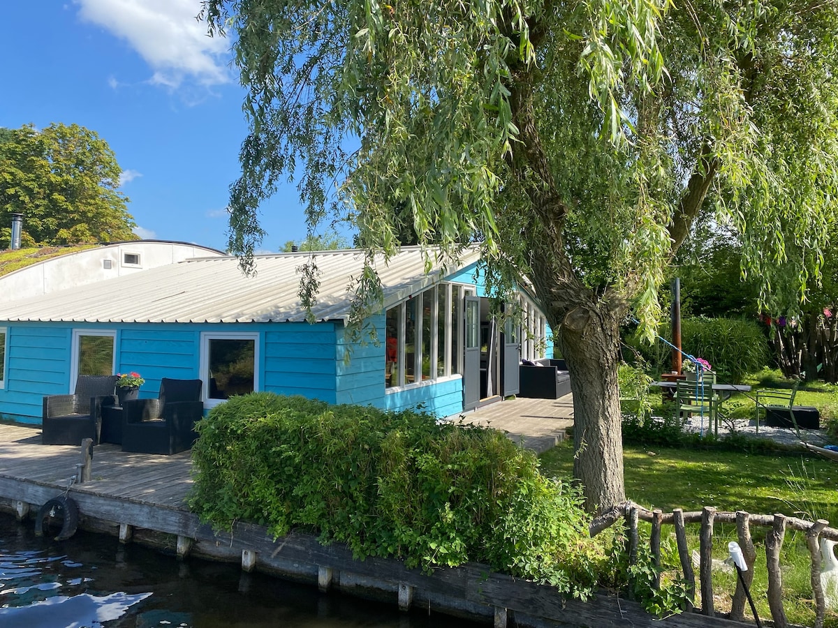 This beautiful house is located on a small island in Aalsmeer and can only be reached by water. Naturally, we provide you with a boat equipped with an electric outboard motor. If needed, we’ll teach you how to operate the boat and tie knots. Upon arrival, we’ll pick you up with our boat. Your adventure-filled stay begins here! There is also plenty of space to dock your own boat if you wish.