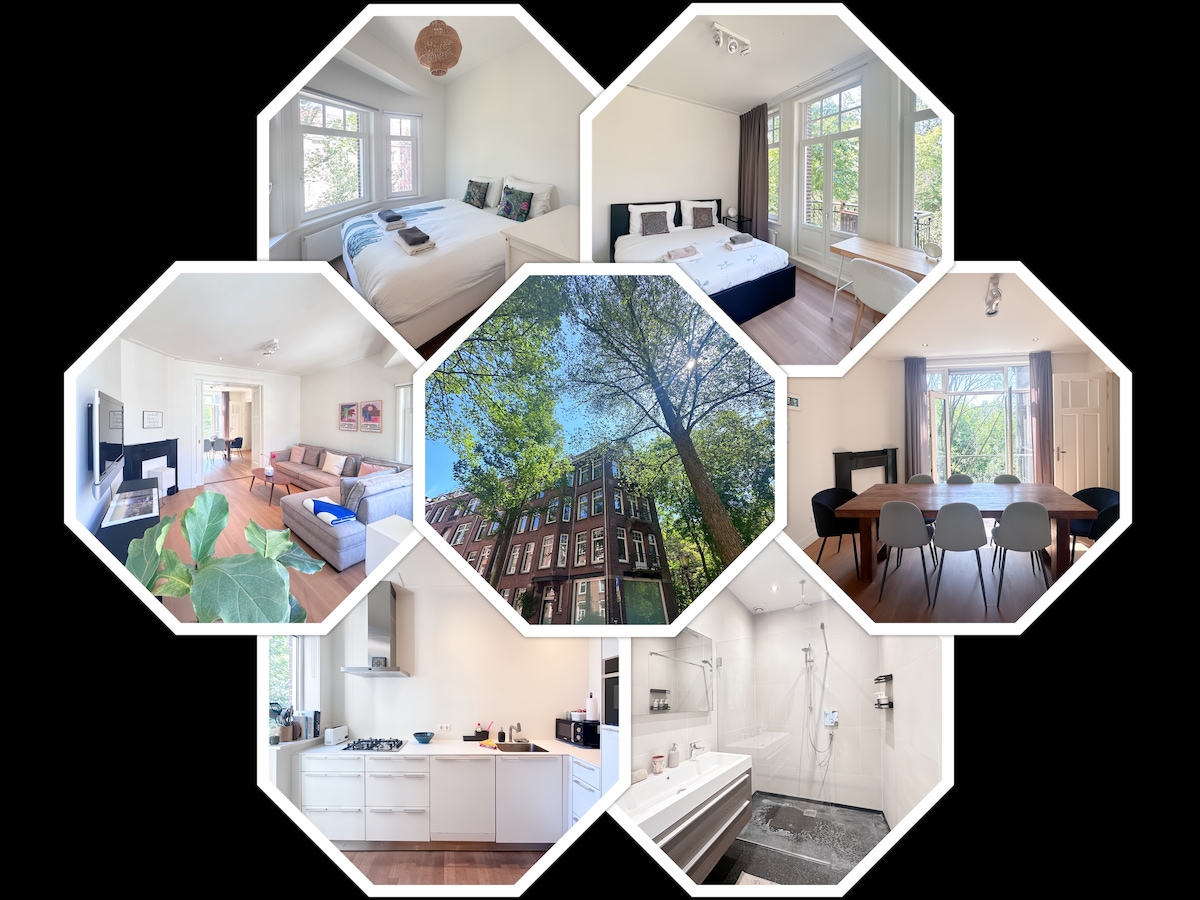 Experience the unique charm of Amsterdam's vibrant Oud West neighborhood with our spacious 90m2 private apartment. It is located on the Van Lennep Canal and offers 3 bedrooms, 2 bathrooms, a kitchen, dining room and living room. Enjoy the balcony overlooking the gardens, or explore the nearby museums, shops, bars and restaurants. In just 4 minutes you can stroll through the beautiful Vondelpark. Our apartment is the ideal place to experience the unique charm and vibrancy of Amsterdam!
