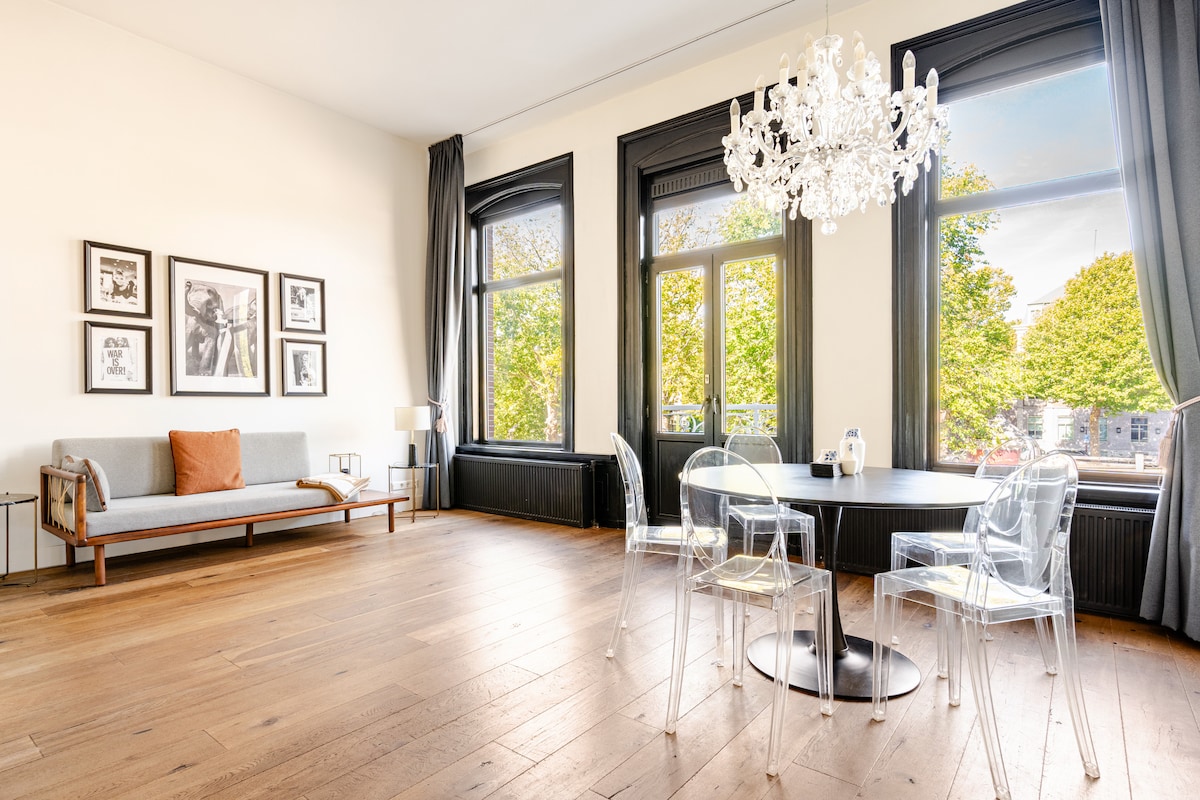 You found it! This unique space effortlessly combines the best of elegance and comfort. The high ceilings, the light, the beautiful exposed beams, the precious art - all creates an authentic Amsterdam experience at a top location. Built in 1890 right on the prestigious Singel canal, this aristocratic house has been home of several famous Dutch intellectuals. Light and airy, designer lighting, stylish furniture, trendy kitchen, speedy wifi - all of it is ready for your perfect stay in the city.