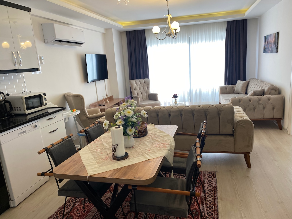 Nakas suites, each of 50m2 and above, with a different concept, have been specially designed for you. Each suite has a bedroom, living room, bathroom and kitchen. And this one is penthouse suite We're looking forward to welcoming you with its unique sea view and comfort at a distance of 5 minutes to the bays, 5 minutes to the center and shopping areas and 25 minutes to Ölüdeniz.