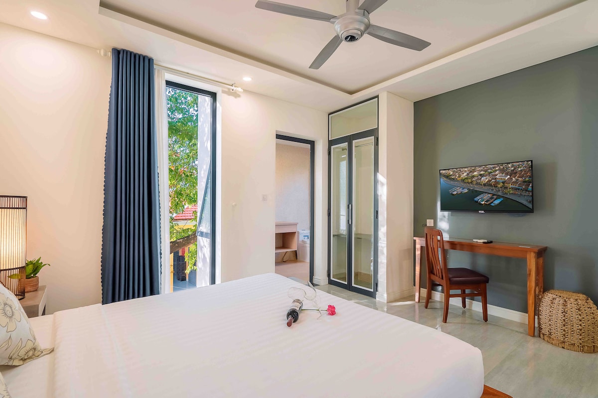 Nestled by Co Co River, TAG villa is a tranquil haven where nature embraces home. River views greet you from the living space, sunlight and breezes your daily song. The open kitchen and dining area share this panorama, connecting to the garden through glass walls. Gardens extend the villa's soul; stone pillars frame the lush front, a pool and lounge the serene back. TAG Villa is more than a house; it's a romantic retreat, blend of nature and design, waiting to be filled with cherished stories.
