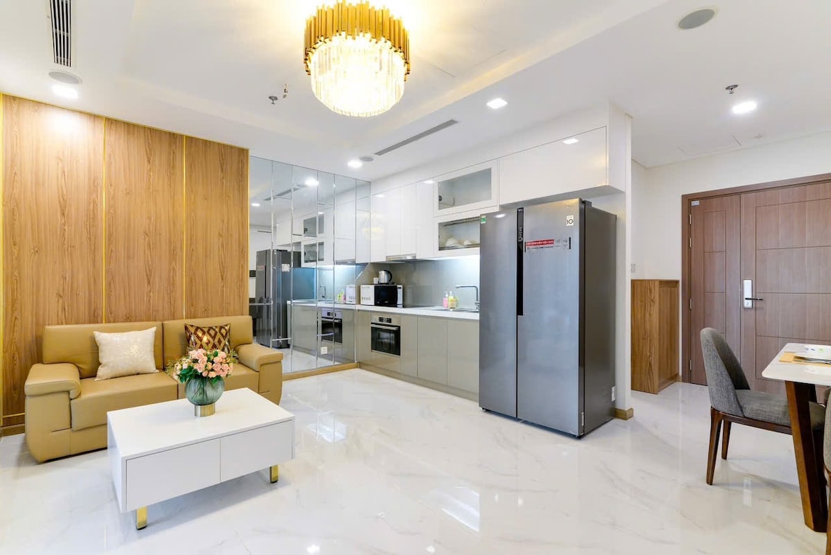 - Located at Master Centre Point, Vinhomes Grand Park, near Vincom Mega Mall and Winwonders Water Park and Theme park. - The apartment is clean and beautiful, with comfortable bedding sets. - Strong WiFi for both work and entertainment. - Full and Modern amenities: big refrigerator, induction stove, microwave, washing machine, smart 65-inch TV, kettle, rice-cooker, hair dryer, iron, umbrella, Lavie mineral water, seasonings... - Fitness/gym center and swimming pool are included for guests.