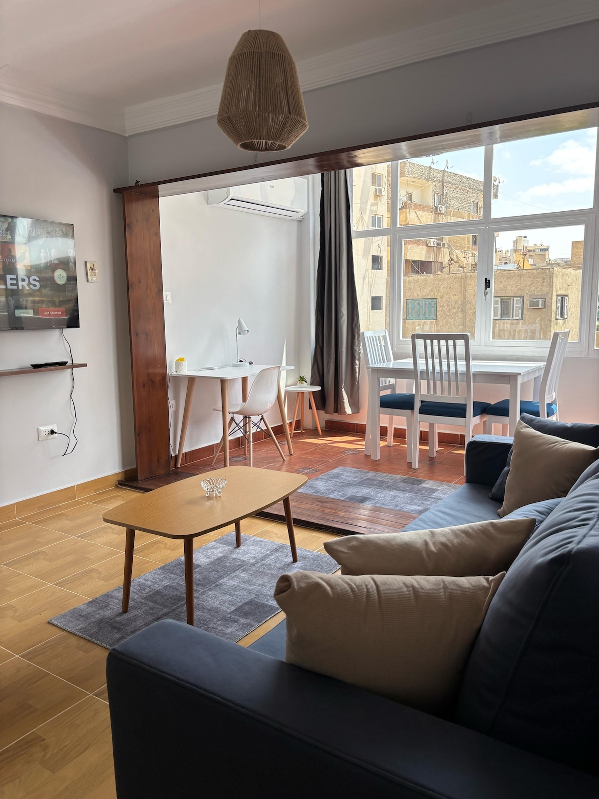 Your Home Away from Home in Heliopolis! 🌇✨ Hayati Stays is proud to be among the top 5% of hosts in Egypt, offering exceptional hospitality in one of Cairo’s most vibrant neighborhoods. This modern 1-bedroom apartment is designed for comfort, convenience, and luxury, featuring a spacious open layout, tasteful furnishings, and a cozy living room 🛋️ with a large flat-screen TV 📺. Experience one of the premier suites in Heliopolis—book your stay today! 🏡😊