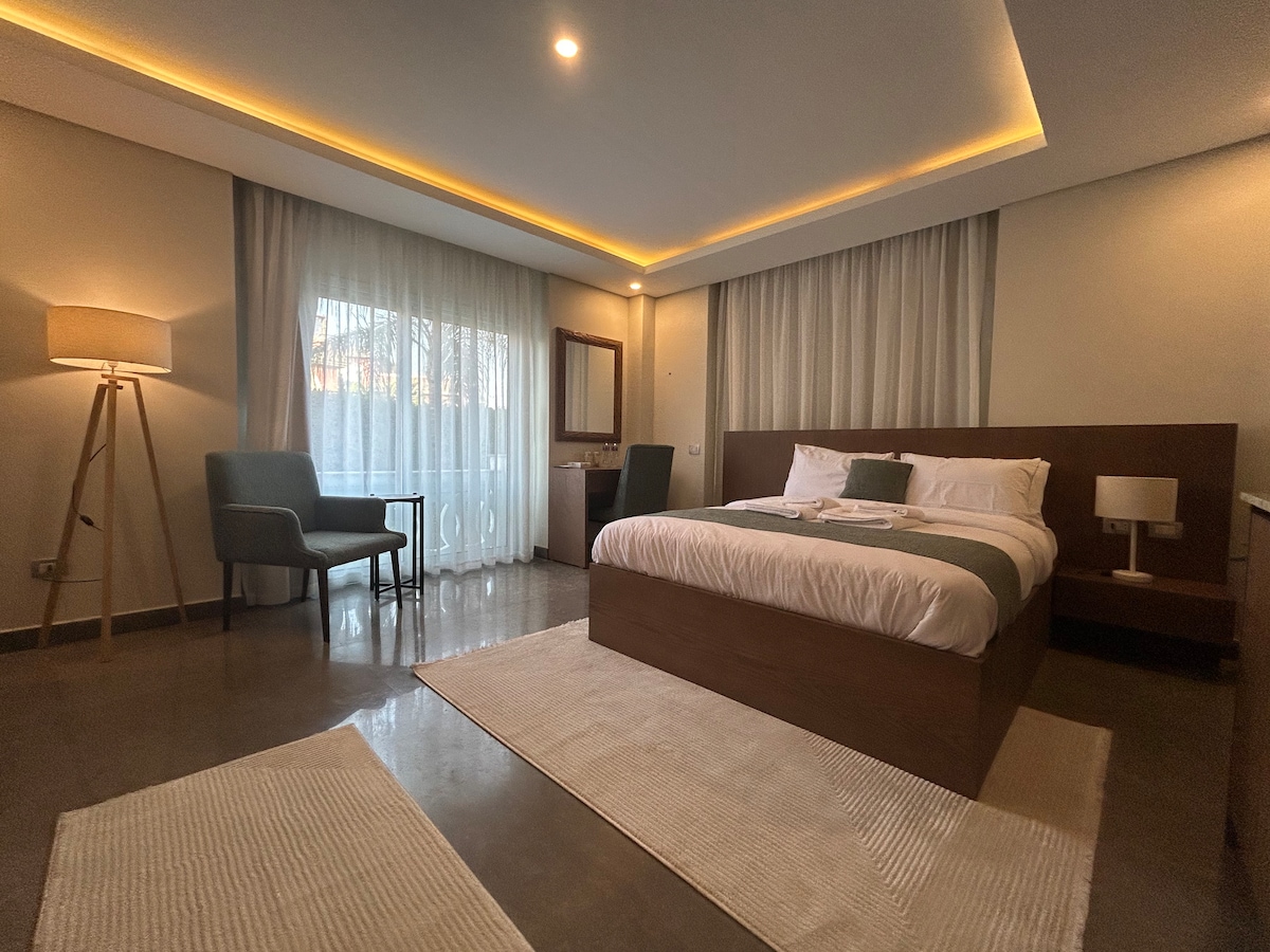 Villa-Style Studio! Experience comfort and value at Azure Apartments in New Cairo — your private studio with access to a large pool, spacious garden, and sunny rooftop terrace. Each unit features a private bathroom, kitchenette, smart TV, Wi-Fi, and air conditioning. Located inside a compound with 24-hour security, and on-site staff available anytime, you’ll enjoy the luxury of a villa for the price of a studio.