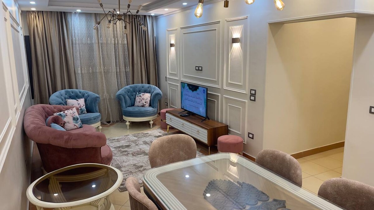 Experience the ultimate in modern comfort in our new 2-bedroom and 2-bathroom apartment suitable for 4 persons,Every inch of this stylish space is new and designed to make your stay unforgettable Our apartment is perfect for families or a business trip. You’ll find all the amenities you need, including a fully equipped kitchen, a comfortable living area Located in a prime compund, you’re just a short way from restaurants,shops in tagamoa and naser city Book now,,We can’t wait to host you!