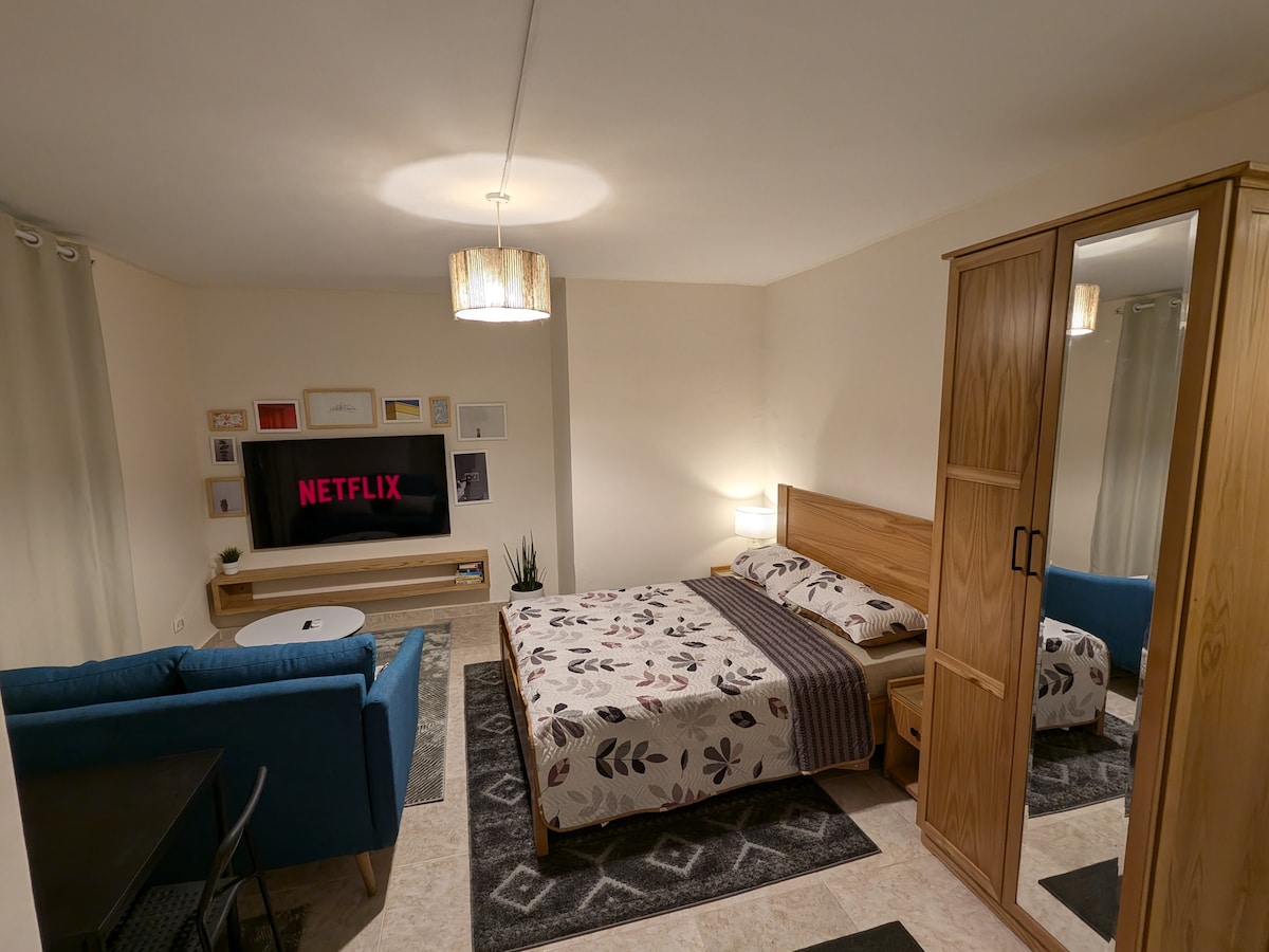 This charming ground floor studio offers a perfect blend of comfort and style, Located on Al Taqa Street, the studio is just 5 minutes from Ahly Club, 8 minutes from Al-Azhar University, and 15 minutes from Cairo Airport, offering convenience and accessibility to key locations in the city. Modern amenities are at your fingertips, including a smart TV for entertainment, a refrigerator and cooker for meal prep, and high-speed WiFi and air conditioning to ensure comfort throughout your stay.