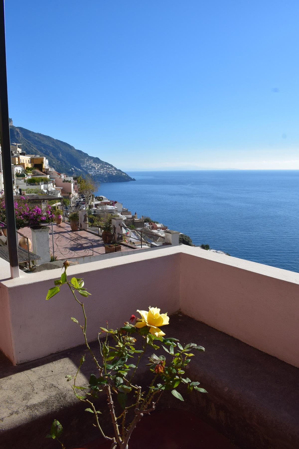 Casa Sole , is part of the colored cluster of houses set into the hillside above the sea, which appears in all the photos of Positano. When you step onto the beautiful terraces, you will find yourself with a ´front-row seat´ from which to view the panoramic view of the sea and Positano.
