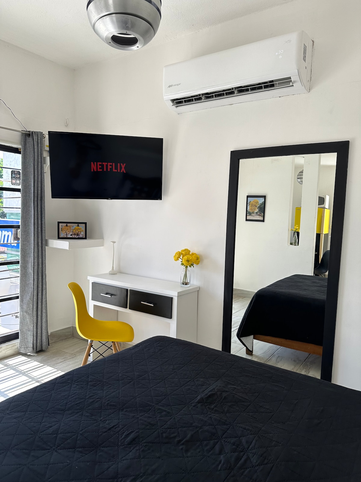 Loft independiente con entrada automatizada, en planta alta, cuenta con aire acondicionado, wifi de 100mbps y netflix. Tiene cocina con estufa, refrigerador y utensilios. No se comparte ningún área.