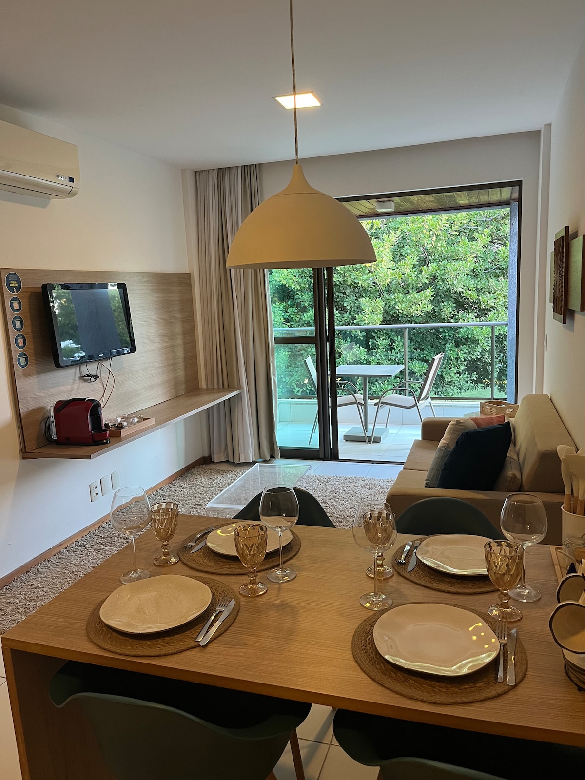 Apartamento para até 4 pessoas. Sala com sofá-cama queen, tv a cabo com, netflix, wi-fi. Suite c/ 1 cama de casal e ar condicionado. Roupas de cama e banho disponibilizadas . Cozinha completa. Aproveitem este espaço idealizado para transformar suas férias na praia, em férias dos seus sonhos! A vista de tirar o fôlego, a brisa que te acalma, unindo a tudo isto, todo o conforto de um apartamento funcional e cheio de boas energias! Venha viver esta magia , aguardo vocês!