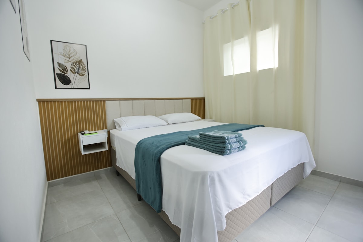 Quartos climatizados com decoração minimalista e toques do Agreste. Ideal para casais e executivos que buscam conforto, privacidade e praticidade. - Cama e travesseiros confortáveis - Cozinha completa - Chuveiro elétrico - Wi-Fi rápido - Garagem coberta Localizado em área estratégica, com padaria, supermercado, cafeteria e restaurantes a poucos minutos.