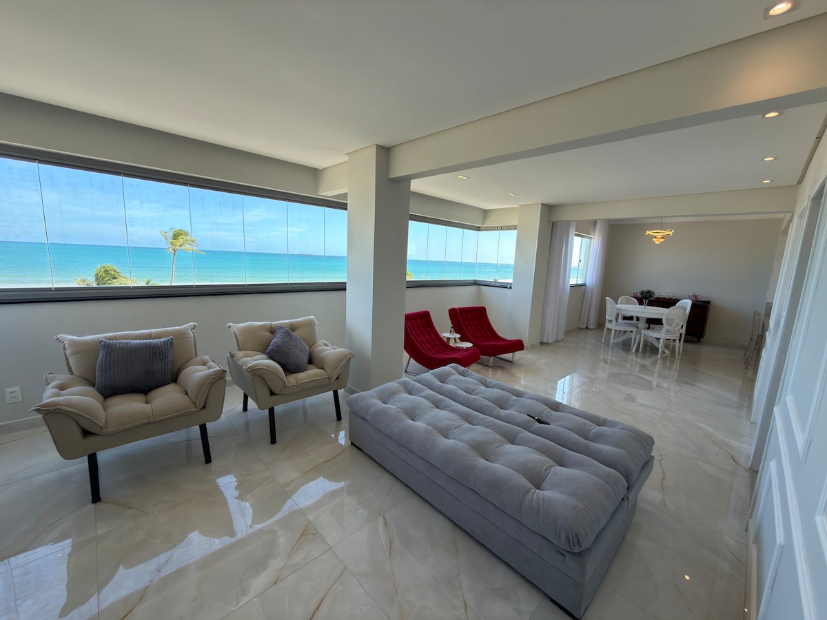 Cobertura única frente-mar nascente 130m2 3 suítes, no Barra Bali Resort, beira mar na melhor praia de Alagoas, e com total privacidade e área de lazer privativa incrível. Apartamento cobertura recém remodelado, com Piscina/SPA aquecida, área externa completa com churrasqueira, adega, cervejeira, decoração rústica contemporânea. Ainda temos bicicleta e caiaque a disposição dos hóspedes. Duas vagas privativas para veículos.