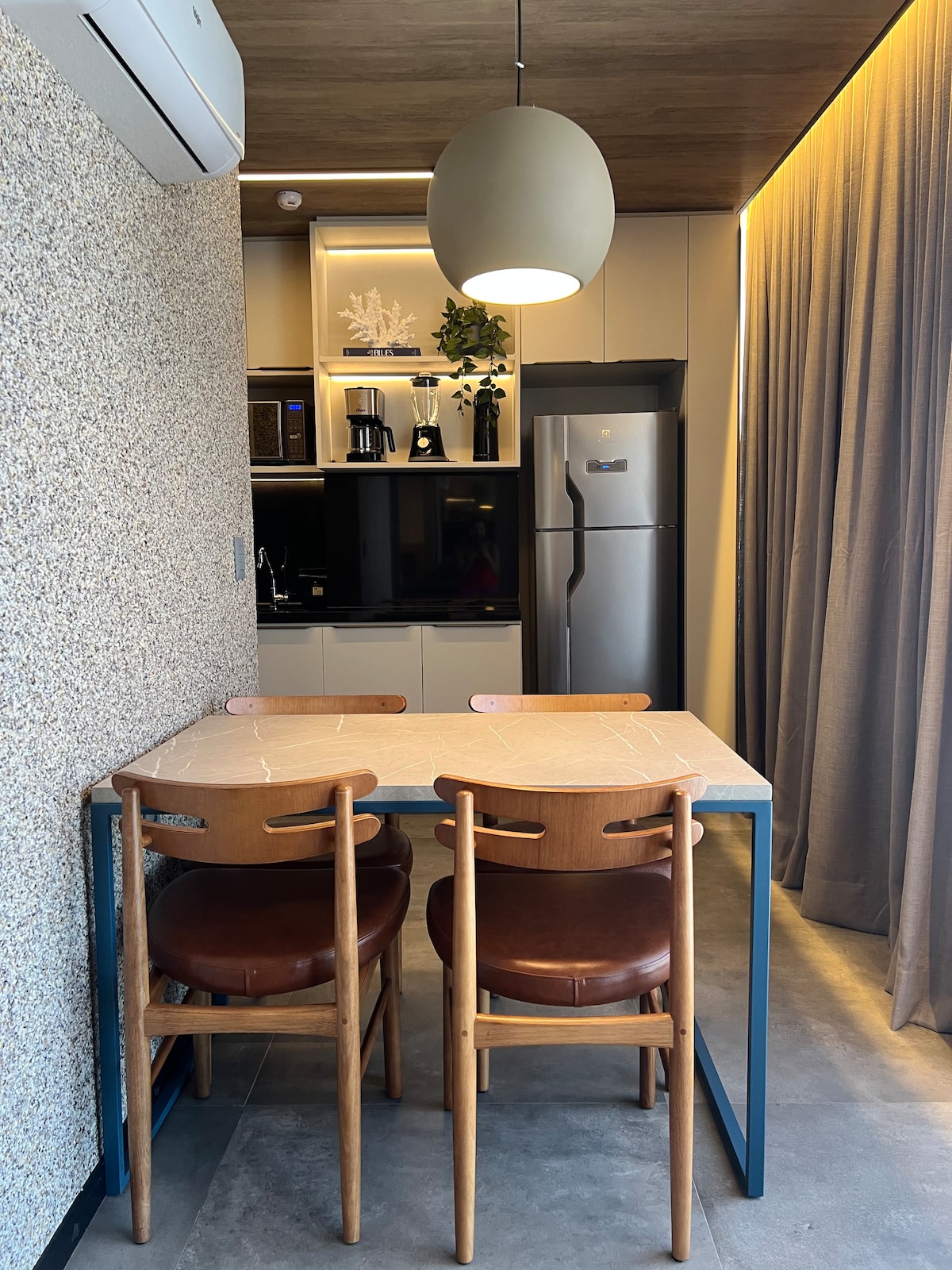 Viva uma experiência única de conforto e estilo! Nosso loft combina o charme rústico com toques modernos e elegantes, criando um ambiente acolhedor e sofisticado. Com acabamento em mármore e móveis rústicos cuidadosamente escolhidos, cada detalhe foi pensado para oferecer bem-estar e praticidade. Além disso, o loft possui Localização privilegiada: a apenas 3 minutos do centro e próximo a supermercados, farmácias, padarias, academia, lavanderia e postos de gasolina.