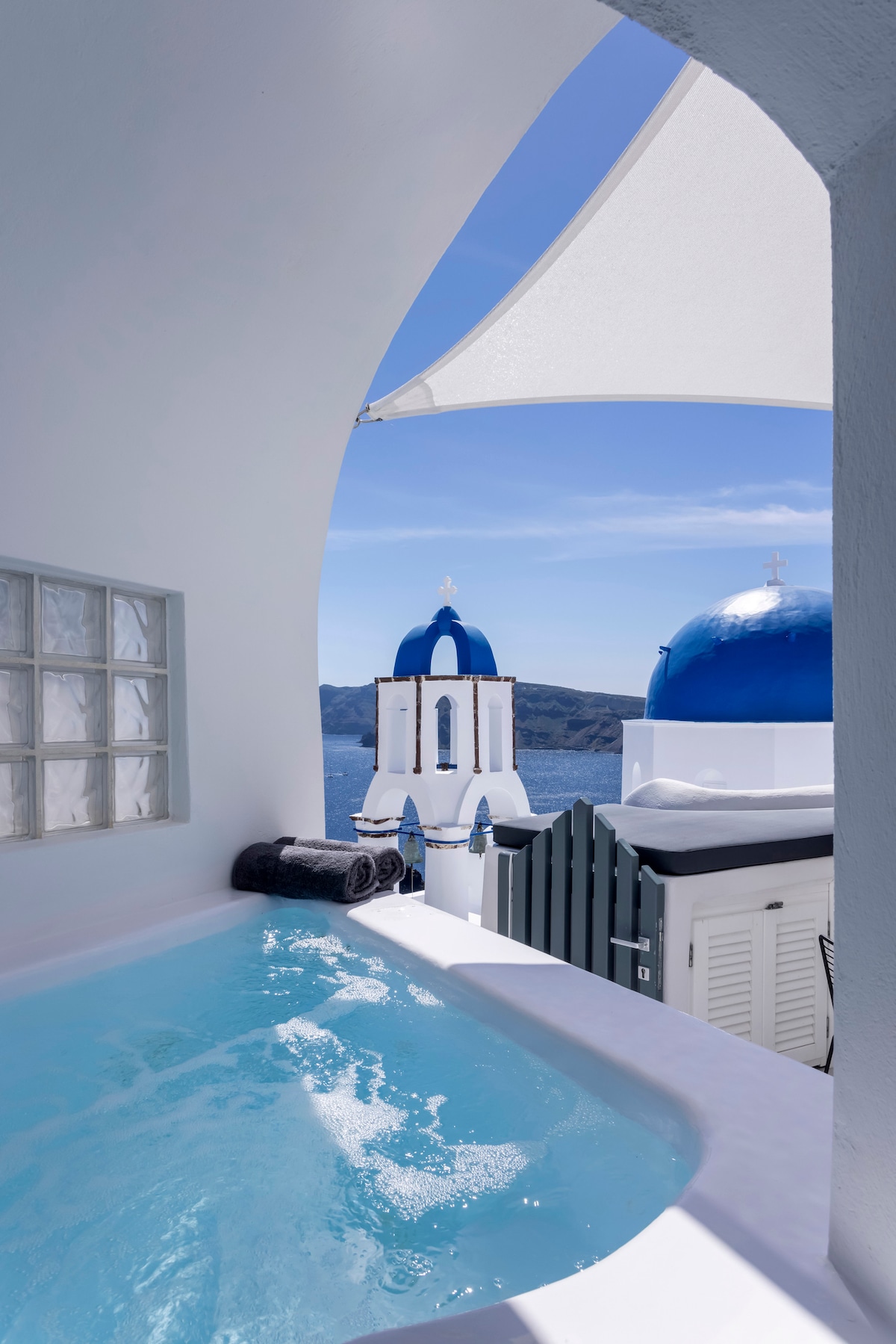 岛屿蓝,明信片完美景观和私人泳池