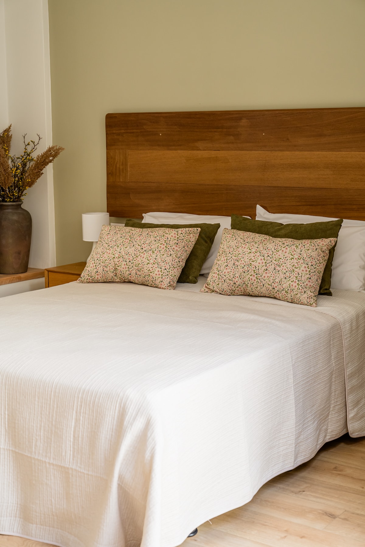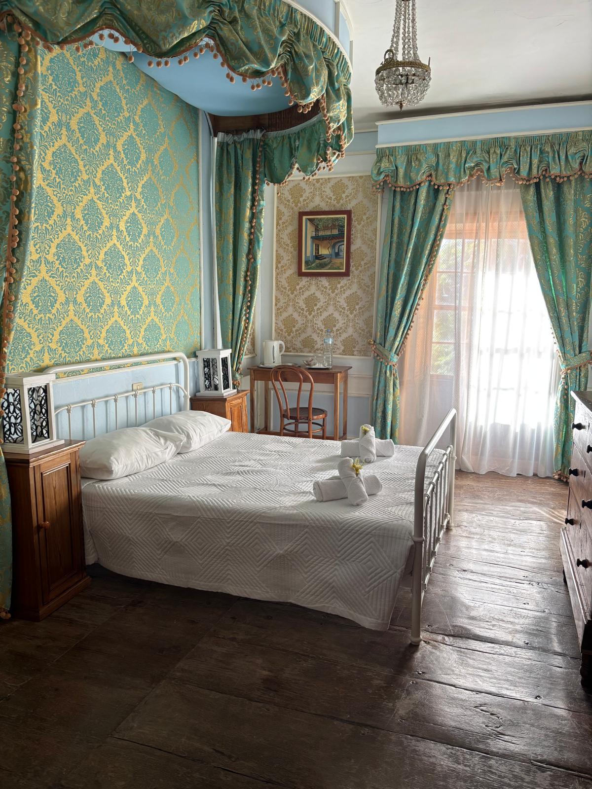 Habitación Suite Vintage en edificio protegido del SXIX rehabilitado en el 2023. El edificio, construido con muros de piedra y vigas y suelos de madera de tea ofrece una experiencia acogedora y cómoda con todas las necesidades de la vida contemporánea: calefacción, baños completos, smart TV, armario, camas dobles, contraventanas con doble acristalamiento, escritorio Las habitaciones están llenas de detalles: poleas en las ventanas antiguas de madera, cabeceros de puertas antiguas restaurados.