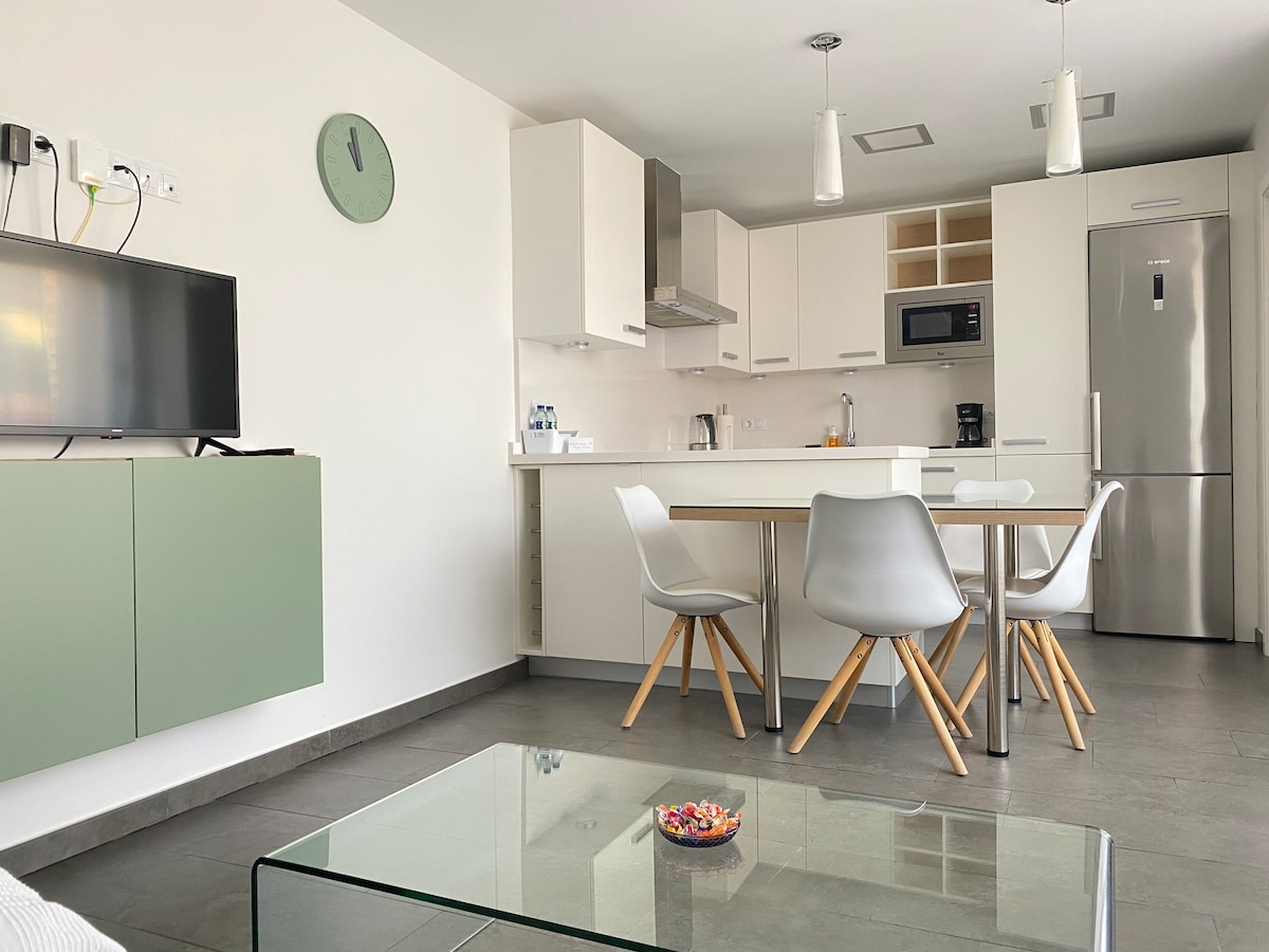 El alojamiento es exterior y luminoso. Equipado con todo lo necesario para que su estancia sea cómoda y agradable. Consta de un dormitorio con cama de matrimonio, cocina americana, abierta al salón y comedor ,totalmente equipada con gran variedad de electrodomésticos como microondas, batidora, exprimidor, cafetera, hervidor, sandwichera, plancha( y tabla de planchado), lavadora. El salón es muy agradable con sofá-cama y Smart TV 4K, pantalla plana. Incluye ropa de cama y toallas. WIFI gratuita. Reserva mínima 2 días. Estaremos encantados de atenderles de 9:00 a 14:00 y de 17:00 a 20:00 horas. Junto al casco histórico y el Estadio Heliodoro Rodríguez López. Este piso también está cerca del Parque Municipal García Sanabria y a menos de 1,5 km del Auditorio y el Parque Marítimo César Manrique. Las Teresitas está a 15 minutos en coche. Es ideal para conocer la ciudad a pie. Buena comunicación autobuses, taxis, próximo a parada de tranvía. A escasos metros del apartamento hay un parking público 24 horas .