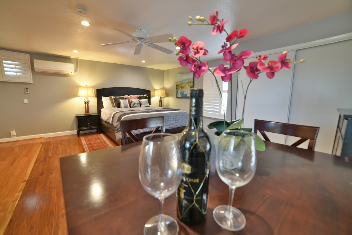Welcome to the newly remodeled California Suite! Enjoy the historic Park Santiago neighborhood, close to Disneyland, Angels Stadium, Newport and Huntington beaches, South Coast Plaza, CHOC, Main Place Mall, The Orange Circle, Irvine Spectrum and more. This is a brand-new, large 500 sq. ft studio. There is plenty of free parking, a beautiful outdoor area to read and relax in, a large TV, AC, heat, laundry, full bathroom and a new well-stocked kitchen with Keurig! Come relax and enjoy!