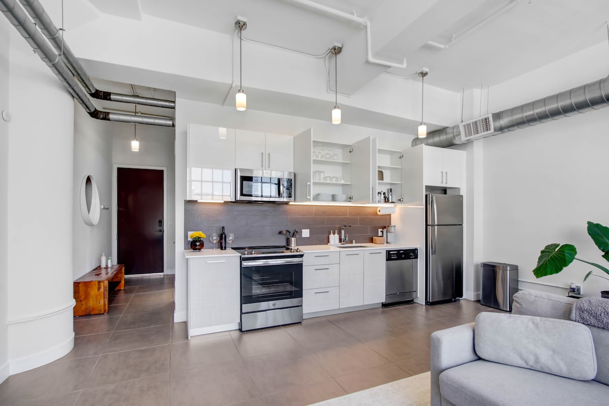 位于洛杉矶市中心的现代宽敞单卧室阁楼-免费停车