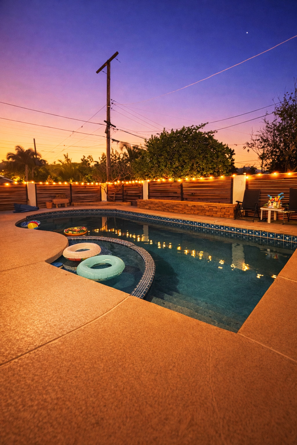No hidden fees, No additional required tasks, more complimentary amenities for you and your family! Enjoy a truly all American home in the heart of Placentia where all the neighbors know your name. During the summer, the family can stay cool indoors with retro arcade games or a complimentary alcohol cocktail! During the winter, enjoy an evening outside on the patio with a private fireplace and three heating lamps around the outdoors dining table or take a dip in the 82 degree heated pool.