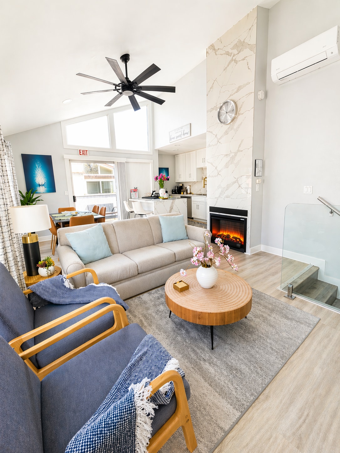 Step into a slice of mid-century modern paradise at this newly renovated Eichler home in Orange, CA. This iconic A-Frame Eichler is a spectacular specimen of 1960s modernism. Enter the atrium and be greeted with an open floor plan, floor-to-ceiling windows, and an entertainer’s dreamiest backyard. From the private pool to cozy fire pit, it's a great space for families, friends, and business travelers alike.