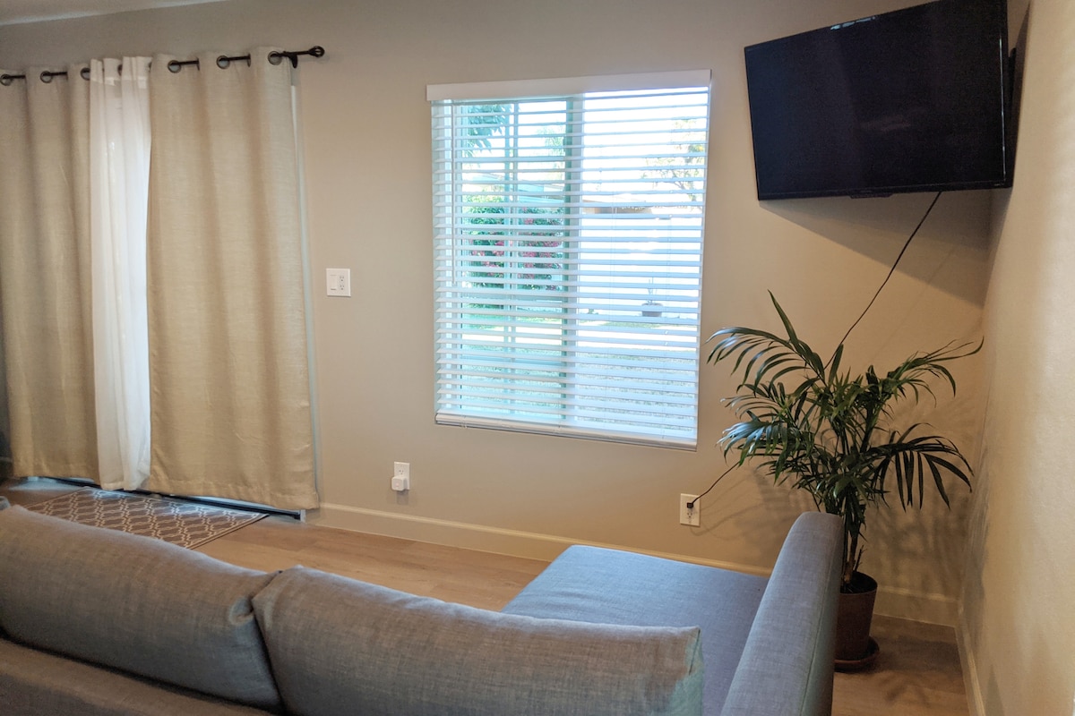 Welcome to the newly remodeled California Suite! Enjoy the historic Park Santiago neighborhood, close to Disneyland, Angels Stadium, Newport and Huntington beaches, South Coast Plaza, CHOC, Main Place Mall, The Orange Circle, Irvine Spectrum and more. This is a brand-new, large 500 sq. ft studio. There is plenty of free parking, a beautiful outdoor area to read and relax in, a large TV, AC, heat, laundry, full bathroom and a new well-stocked kitchen with Keurig! Come relax and enjoy!