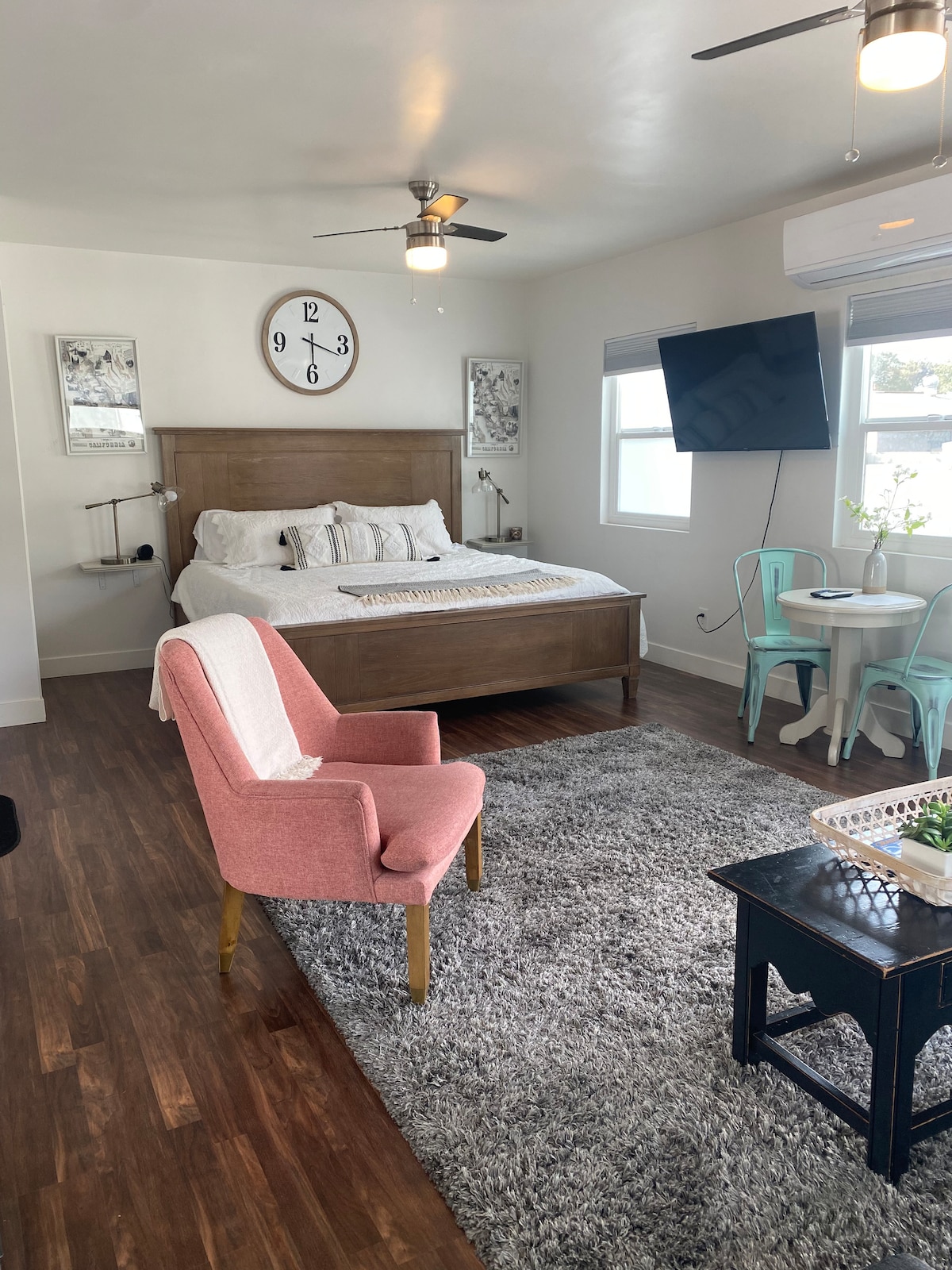 Welcome to the newly remodeled California Suite! Enjoy the historic Park Santiago neighborhood, close to Disneyland, Angels Stadium, Newport and Huntington beaches, South Coast Plaza, CHOC, Main Place Mall, The Orange Circle, Irvine Spectrum and more. This is a brand-new, large 500 sq. ft studio. There is plenty of free parking, a beautiful outdoor area to read and relax in, a large TV, AC, heat, laundry, full bathroom and a new well-stocked kitchen with Keurig! Come relax and enjoy!