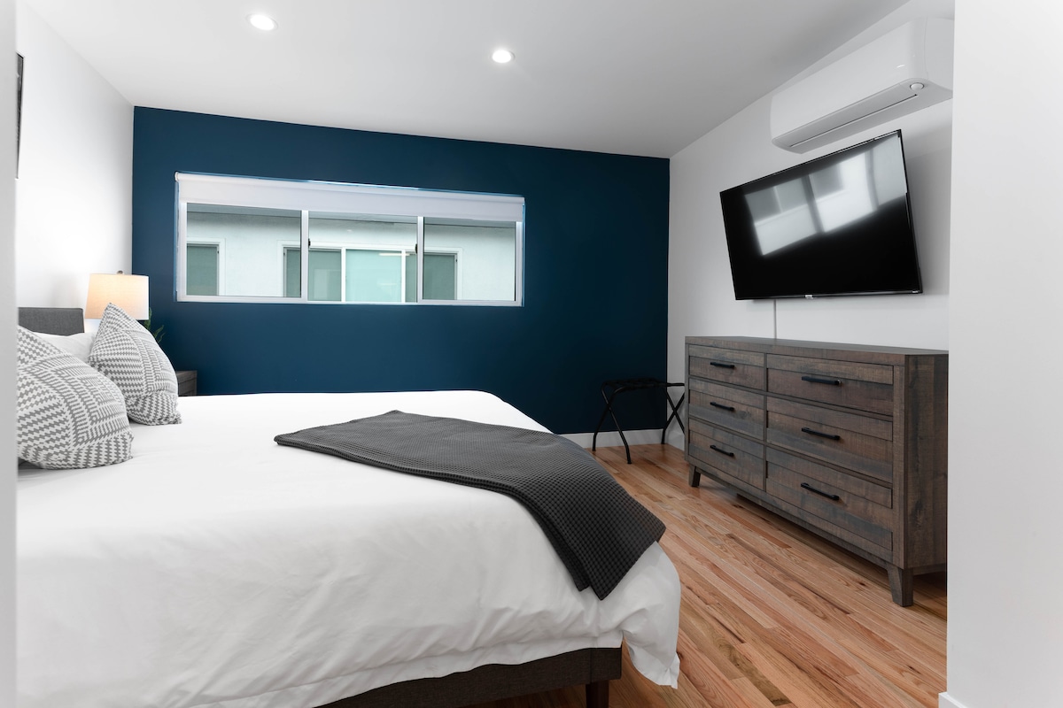 Welcome to your home away from home! Relax in this spacious guesthouse after an exciting adventure in Southern California. Optimized for comfort and privacy, this home boasts modern amenities and comfortable bedrooms. The master bedroom consists of a queen-sized bed, a spacious closet, and a stylish ensuite bathroom. The second bedroom features two twin-sized beds, great for children and individuals. There is also a fully equipped kitchenette, a cozy living room, and a private backyard.