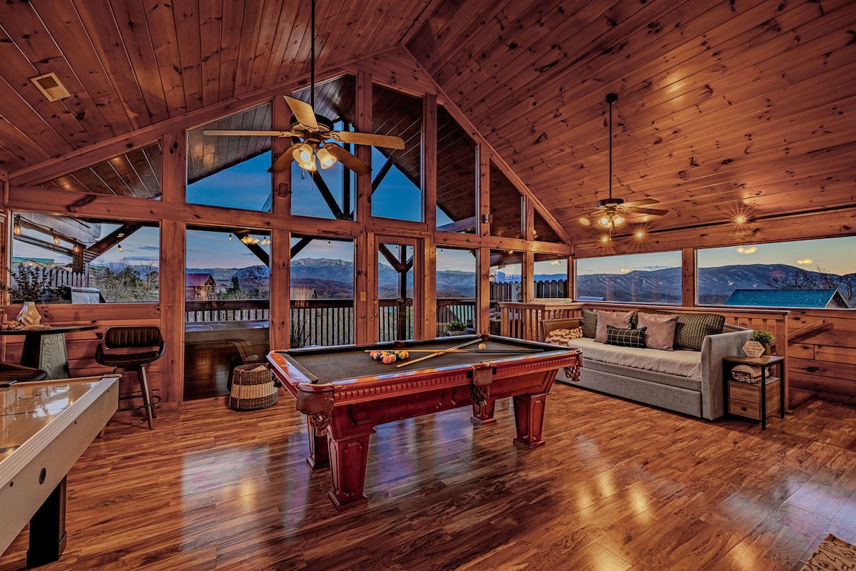 Welcome to Absolute Tranquility Cabin! Where Family Memories and Mountain Views are Never Forgotten. CABIN FEATURES: ✦NEW HOT TUB!! ✦Cafe Quality Automatic Espresso/Latte/Cappuccino Machine! ✦Game Room with Pool Table & Air Hockey! ✦Prime Location! 10min to Pigeon Forge, 15min to Dollywood & 20min to Gatlinburg! ✦Miles & Miles of Epic, Mountain Views! ✦Easy, Paved Road Access (No Scary Mnt Roads) ✦Seasonal, Outdoor Resort Pool! ✦RAVE Worthy Guest Review!