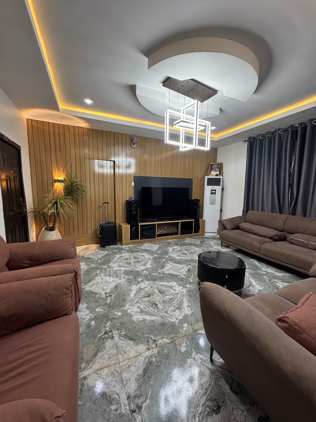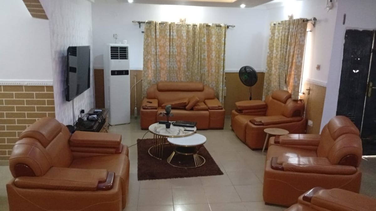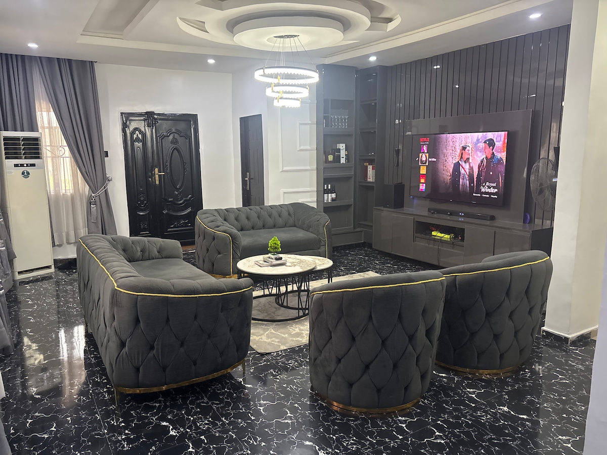 I am happy to host you , welcome ! This modern 3-bedroom apartment is your ideal retreat you would love to enjoy : - ACs in all rooms - Fast WiFi ,Cozy living area, - Cotton blinds for privacy - Well-equipped kitchen , - Soft bedding & ample storage ,Clean bathrooms with modern finishing . - Gated and secured compound - Solar light - Clean water Great for families, professionals & travelers. Comfort, style, and convenience await you