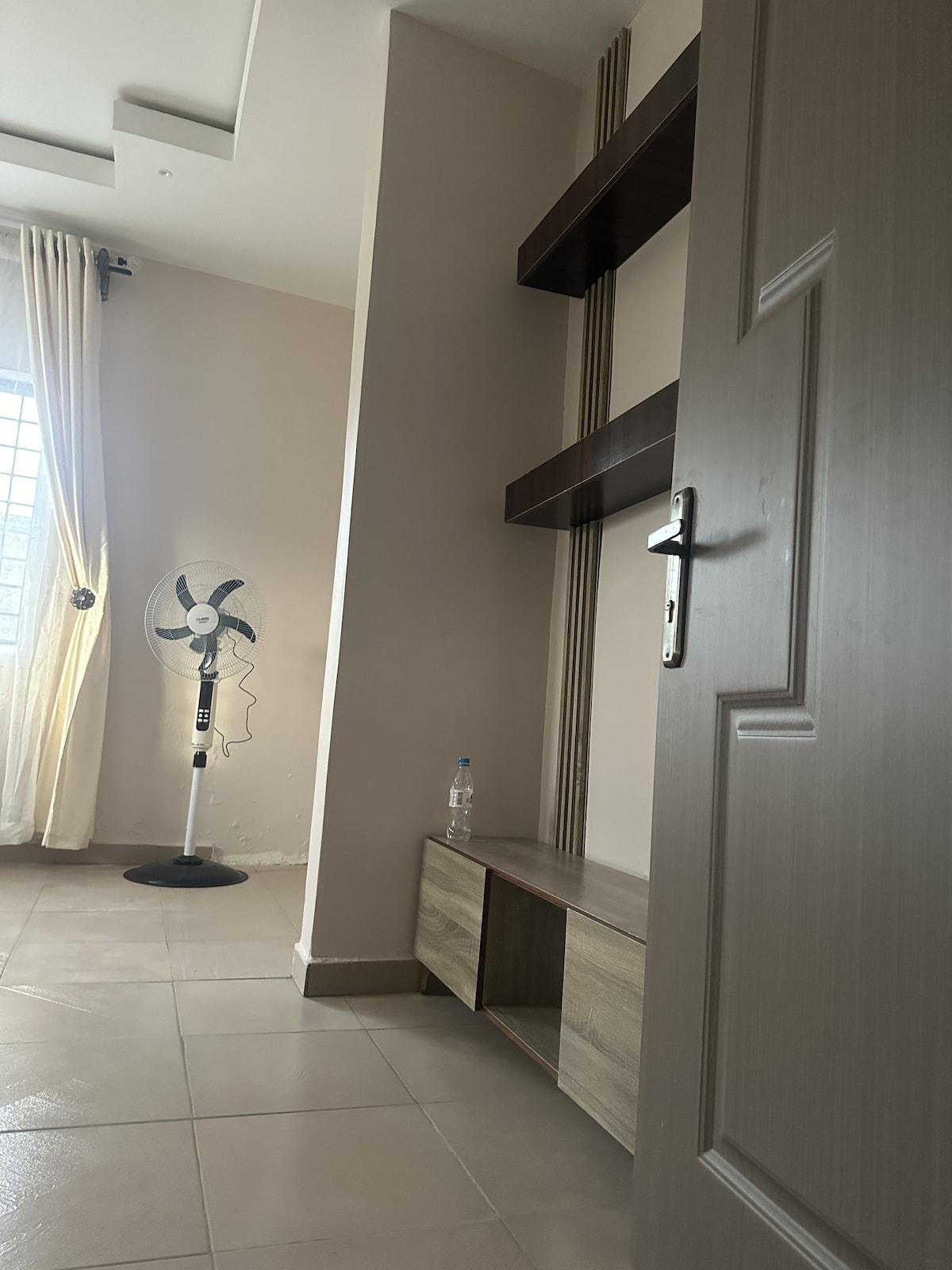 A cozy one bedroom apartment at a nicely located serene environment, few minutes drive from the city hub, market, hospital and the airport. It is super clean and you have your own privacy and car park space. 24hrs power supply Access to cleaner and a chef.