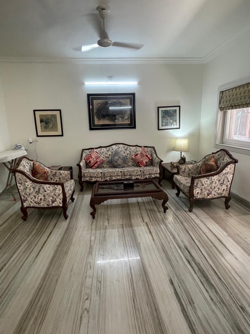 Forget your worries in this spacious and serene space. About Apartment : 4 Storey building with 8 families House details : 1 living room 1 dining room 3 bedroom 2.5 washroom 1 balcony 1 wash area 1 private terrace fully furnished including 2 double beds, 1 bunk bed, cupboards, storage, dining table with 6 chairs, 4 Air conditioners. Common amenities : Lift, Covered Parking, Common garden. Near by : within 0.5 km - bank, jain temples, shopping area, mall, subhanpura garden.