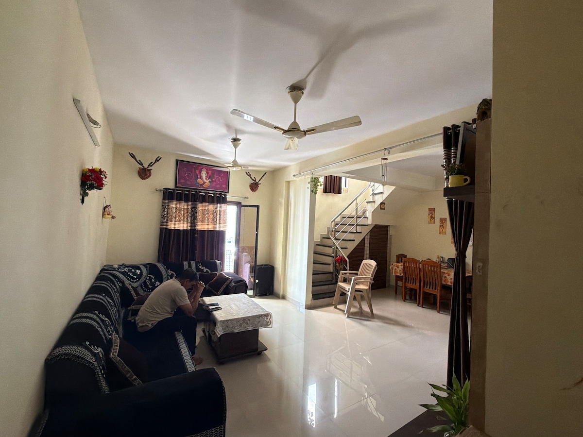 Our home is a cozy space perfect for only married couple or small family It is equipped with essential amenities: from wifi, hot showers, cooking equipment,stove,washing machine, and cupboards. With comfortable sofas in the living room and a queen size bed to sleep in, you will surely feel well-rested and at your home away from home. Located in Pratapnagar, you will be in a calmer part of Vadodara, a safe neighborhood that is only 15-20 minutes away from downtown, airport and train station.