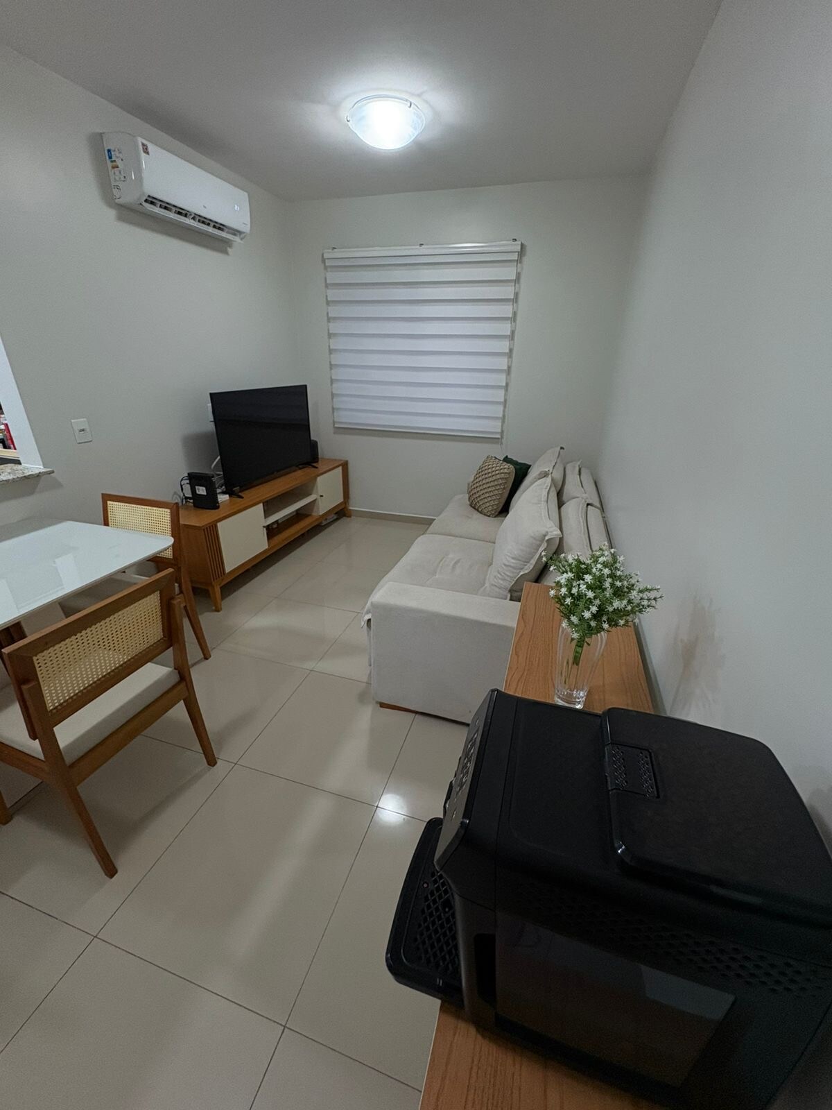 Um lar temporário com conforto, praticidade e ótima localização! Características do imóvel: 2 quartos confortáveis: cama Queen e ar-condicionado e outro com cama de casal padrão e ventilador, Banheiro com chuveiro elétrico, Sala aconchegante com sofá e TV, Cozinha equipada: geladeira, cooktop, micro-ondas, airfryer e mesa posta para 4 pessoas, Cafeteira, Liquidificador, Sanduicheira, Ferro de passar e passadeira Próxima de feira, supermercados, farmácias e restaurantes - Condomínio seguro