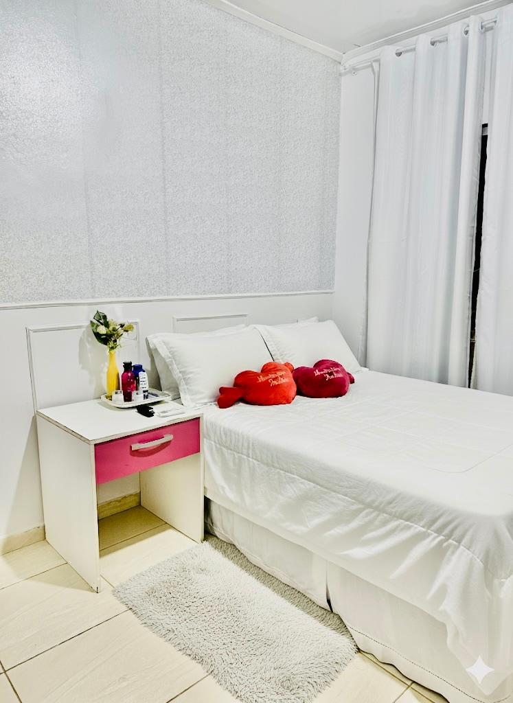 Apartamento aconchegante em condomínio fechado em Ananindeua/Belém, ideal para até 5 pessoas. Quartos com cama de casal e ar-condicionado, sala com sofá-cama, cozinha equipada, banheiro completo e vaga de garagem. Área de lazer com piscina adulto/infantil e playground. Lavanderia e conveniência no condomínio. Localização estratégica, próximo a farmácias, restaurantes e com fácil acesso a Belém. Serviços extras: café da manhã e traslado para eventos.