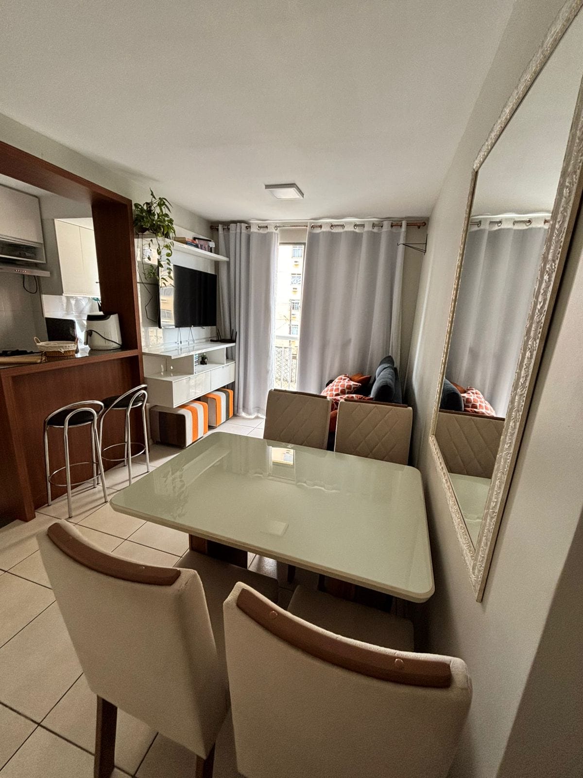 Apartamento completo e bem equipado, possui cozinha com geladeira, cooktop, forno, microondas e máquina lava e seca. Com dois quartos, sendo uma suíte. Suíte com uma cama de casal e o outro quarto com uma bicama. Banheiro social. Localização estratégica, próximo de farmácias, restaurantes e supermercados. Condomínio com área de lazer completo com piscina e academia. Estacionamento privativo com uma vaga de garagem.